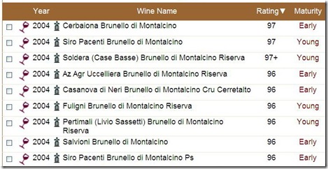 2004 年份在所有 Montalcino 200多家酒莊裡 Cerbaiona 榮獲 Parker 最高分 97分