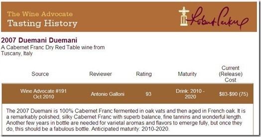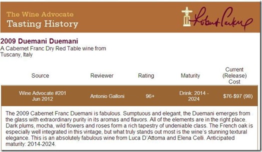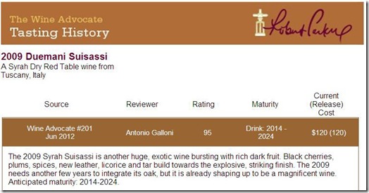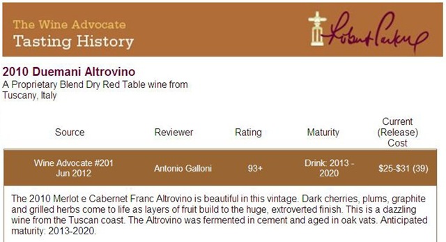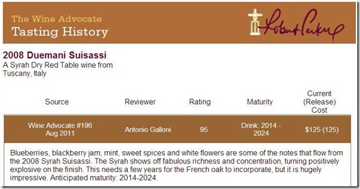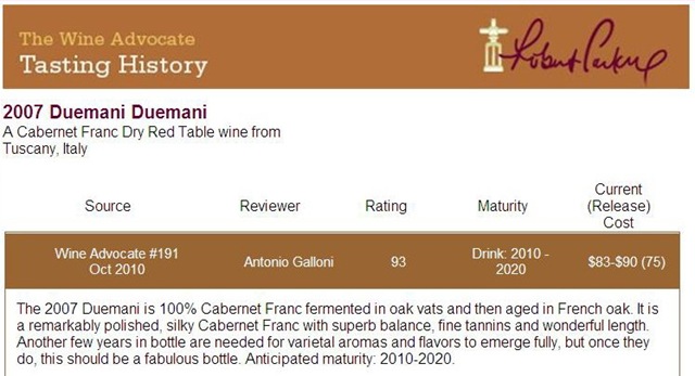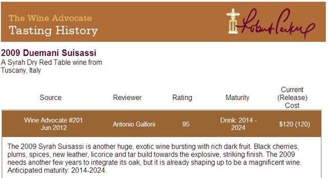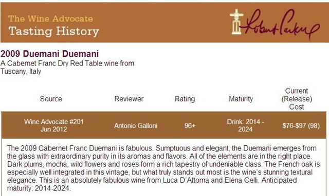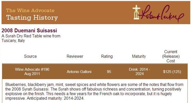 經過幾年的努力後,Duemani 酒莊已獲得 Robert Parker 和 Wine Spectator 高度評價,在 Luca 的高度專業努力下,再獲得第三個100分相信是值得我們期待的。